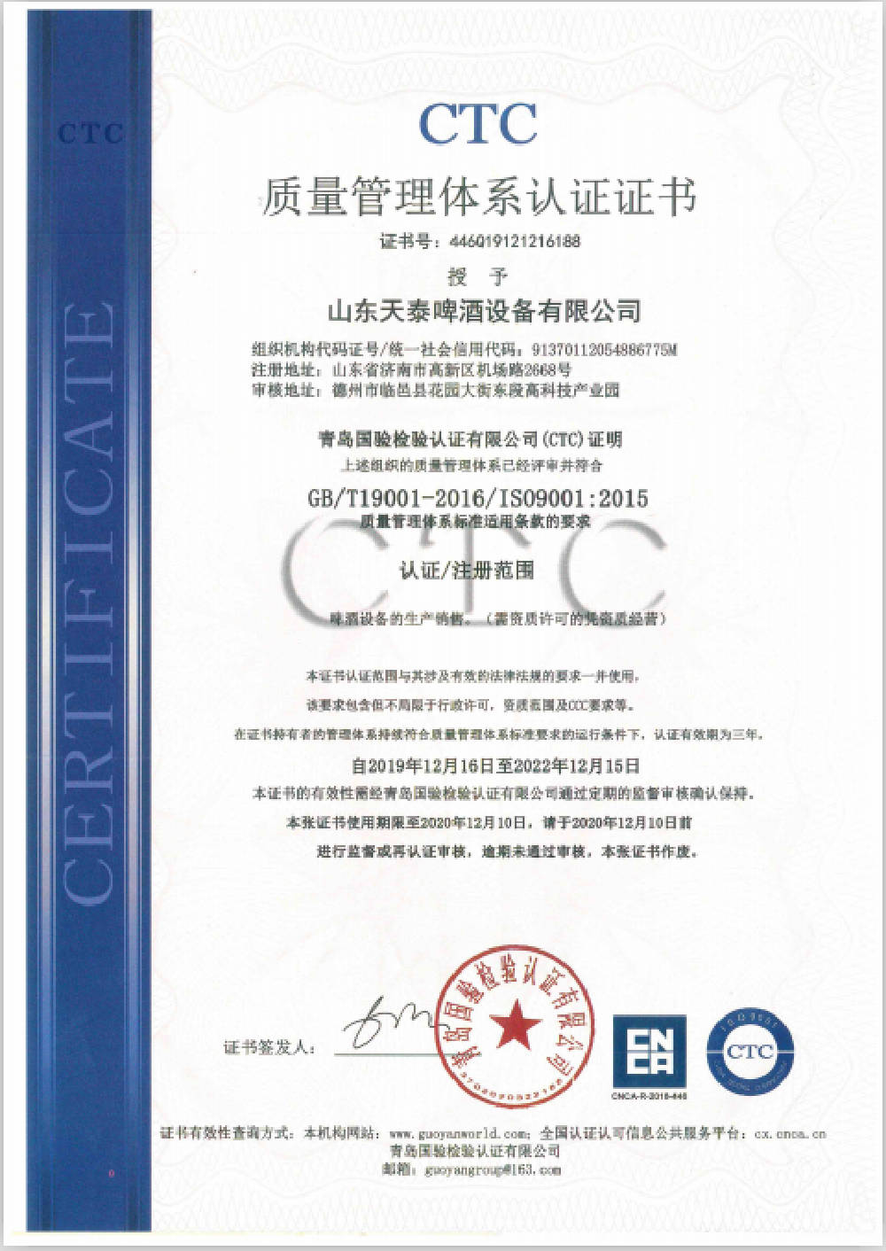 歡迎來到山東天泰啤酒設備有限公司!
