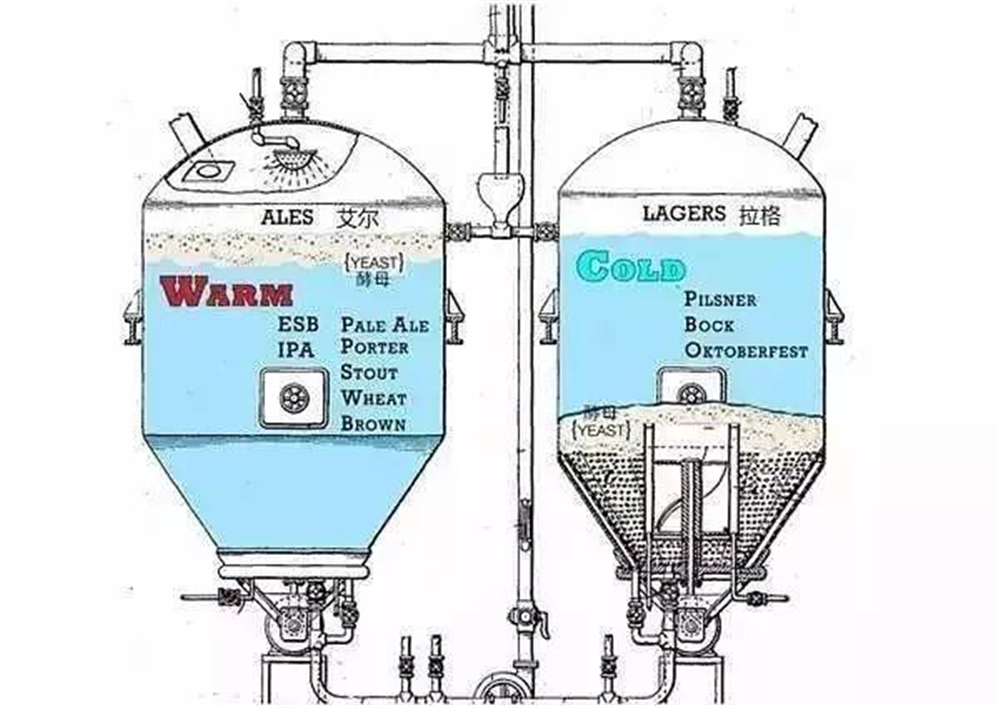 發(fā)酵罐成熟罐:在冷卻的麥汁中加入啤酒酵母使其發(fā)酵麥汁中的糖分分解為酒精和二氧化碳,大約一星期后,即可生成嫩啤酒,然后再經(jīng)過幾十天使其成熟。