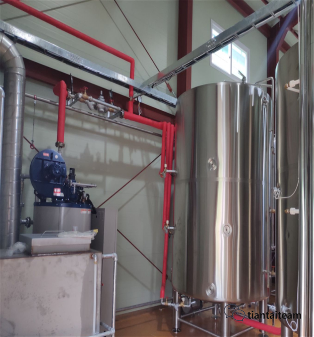 設備配置不同,釀造一批次時間一般7-8小時,按正常的工藝標準間隔4小時投料一次一天最多釀6批次。為了降低初期投資風險,節約成本,選擇多批次釀造不失是一個很好的方法。現在大部分的精釀啤酒廠會選擇四器糖化系統(糖化罐+過濾罐+煮沸罐+回旋沉淀罐)。有一些啤酒廠為了一天多釀造幾批次會增加一臺在暫存罐,另外個別啤酒廠因工藝需求會再增加一臺糊化罐。所以根據自己對產量的需求選擇合適的糖化系統。