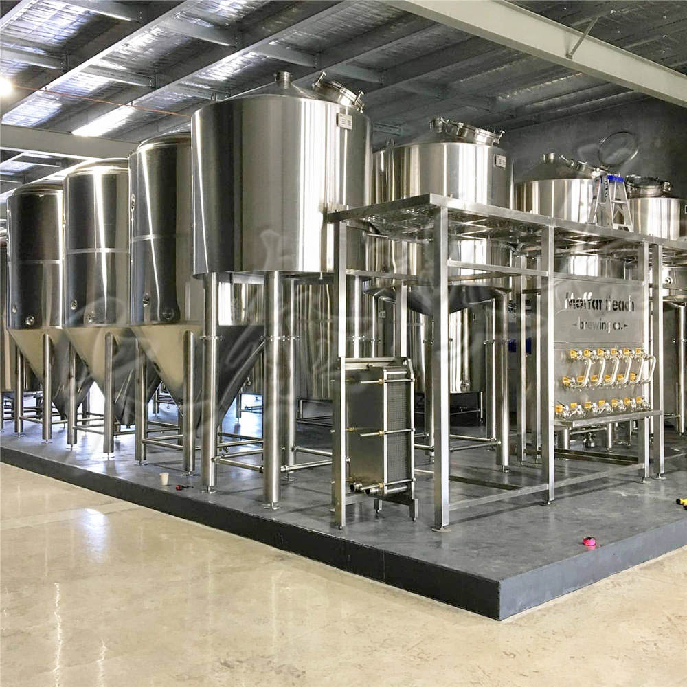 | 標(biāo)準(zhǔn)組成 | 3000L糖化罐+3000L過濾槽+3000L煮沸罐+3000L旋沉槽+6000L熱水罐+304不銹鋼輸送管道+全不銹鋼平臺+配套304不銹鋼氣動蝶閥和管件+酒花過濾器+30㎡板式換熱器+配套儀表儀器 |